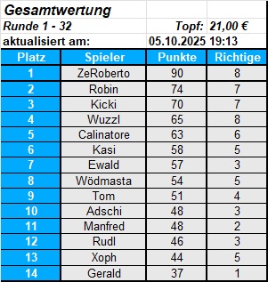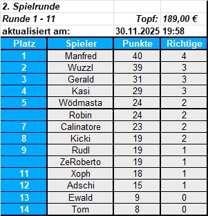 Runde 1 – 04: Robin (10) – 1 Spiel ausständig 3.12.25